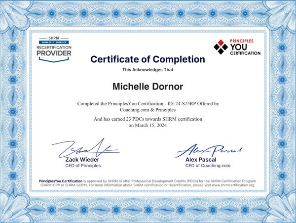 Michelle‘s other archetype is The Coach (PrinciplesUs©️) which stirs up a strong passion to motivate others to success with a people first mindset. Michelle’s 2nd archetype, (The Quiet Leader) emanates a cool, calm, collected personality and a strong passion for transformational and servant leadership styles coupled with a never ending drive for learning, researching, and gathering information to motivate and educate your team on what truly matters from her 3rd PrinciplesYou©️ archetype (The Growth Seeker).